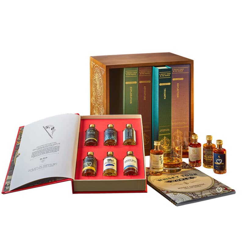 - 24 whiskies premium (5 cl chacun) : sélection internationale couvrant 17 pays producteurs